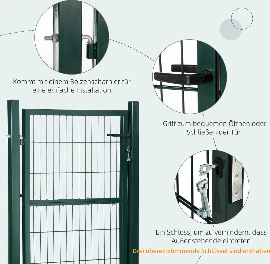 Schreibe die erste Rezension für „HOMCOM Gartentor Gartentür Zauntor Hoftür Aus Stahl Mit Griff Schloss Und Schlüsseln 97 X 170 Cm Grün“ Antwort abbrechen